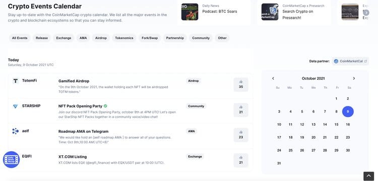 CoinMarketCap has a data partnership with CoinMarketcal. Thus, you can with confidence choose to look from either of the two sites since the information should be the same. However, as a quick tip, the filters and sorting systems are better on CoinmarketCal and there’s no denying that. So, if you're doing more thorough research on a project I would suggest using CoinMarketCal. However, if you check crypto prices daily from CoinMarketCap then make sure to check the calendar too while you're there.