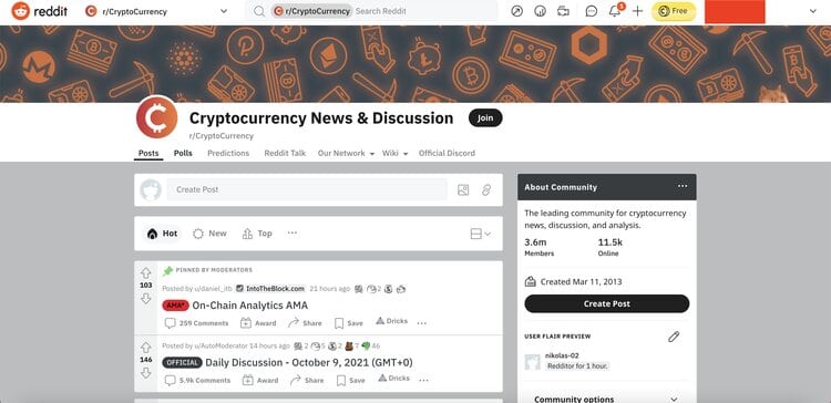 You'll find specific groups for certain projects and also larger groups focused on the whole markets, the most famous one being r/cryptocurrency on Reddit. However, while there are many smart people who give valuable information there’s also a bunch of nonsense like misinformation and promoting frauds. So, when engaging in these community groups make sure to double check the information out there.