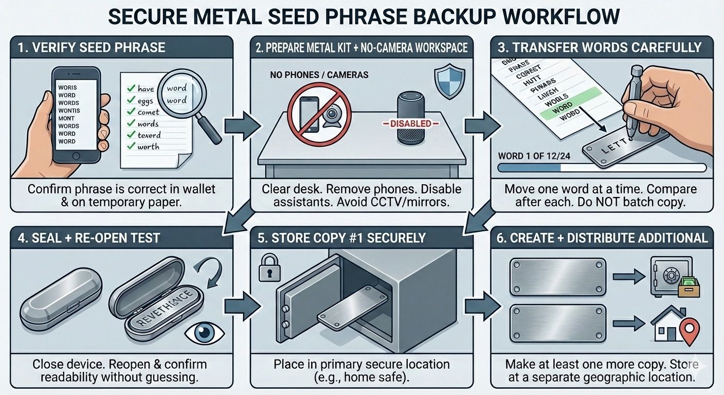 - Keep a separate location log (never the phrase) + set audit reminders.