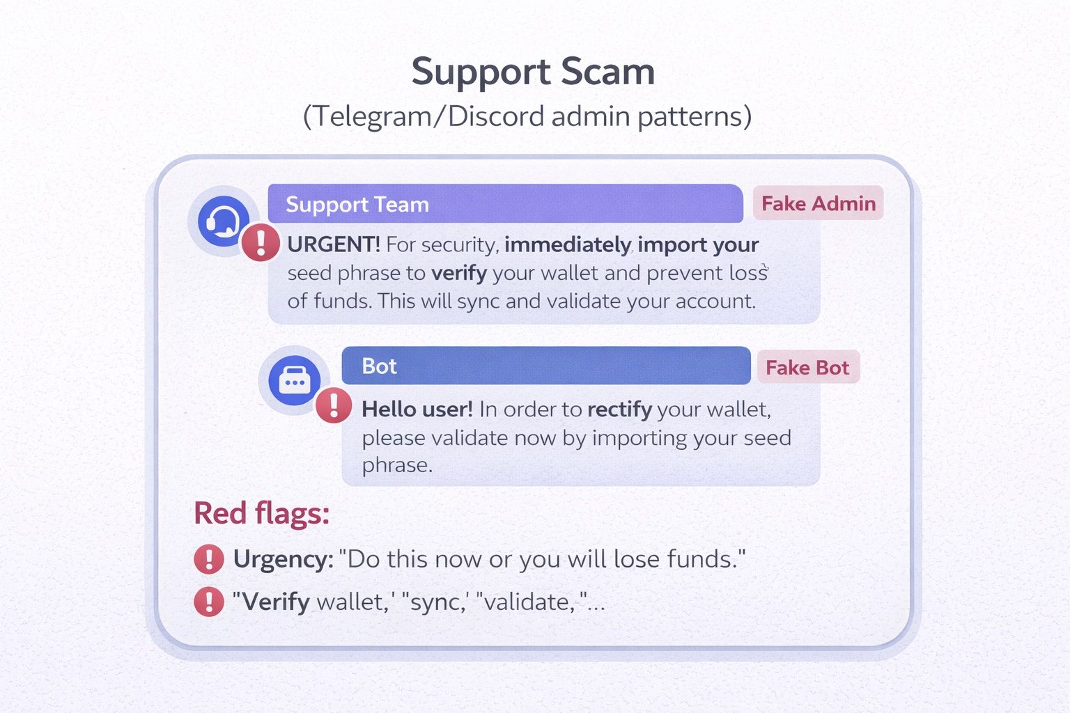 You Should Never Share Your Seed Phrase Under Any CircumstancesRed flags list: