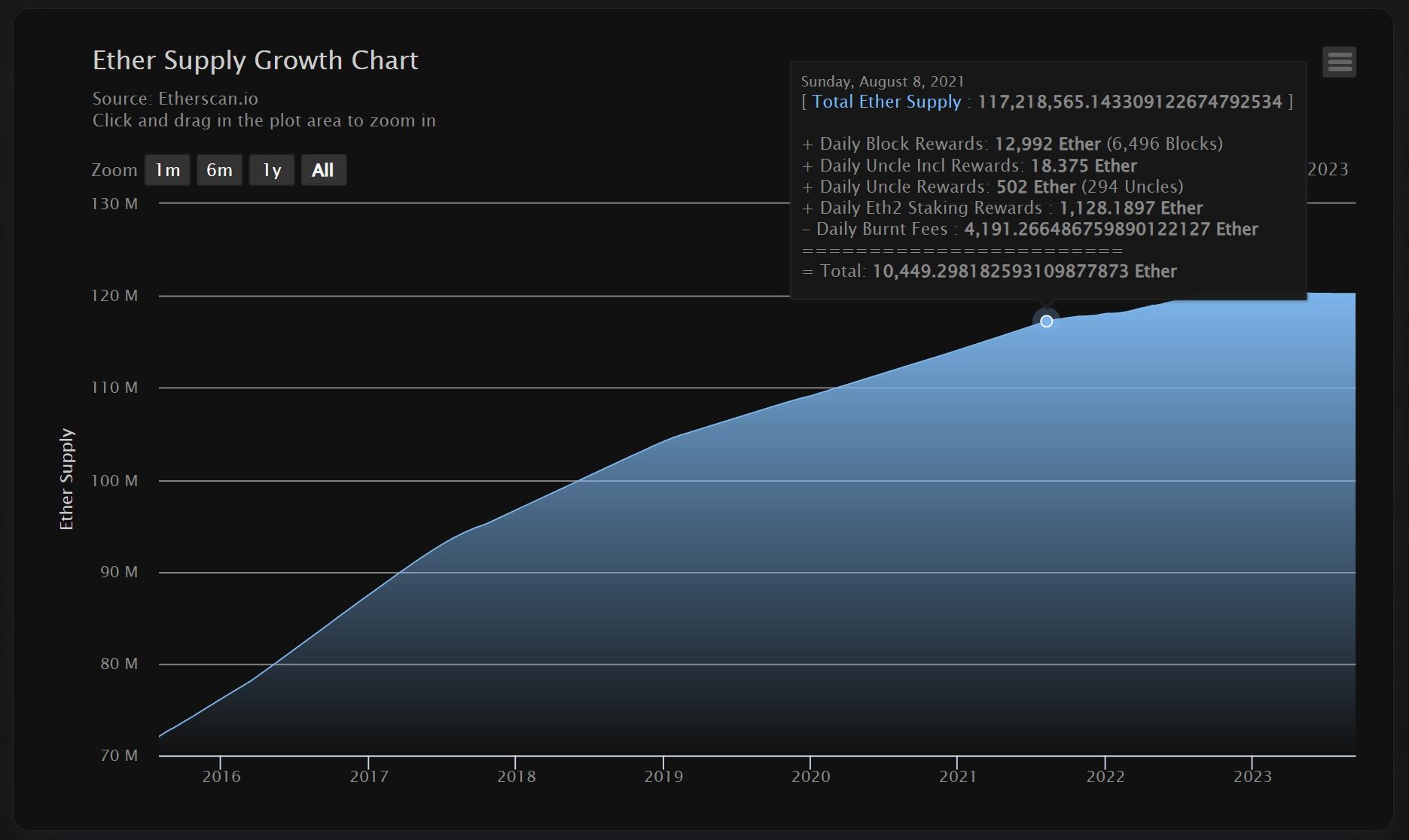 Fee Burn With EIP-1559 Was Implemented On Aug. 5, 2021. Notice How the ETH Supply Begins to Flatten From That Point. | Source: EtherscanTherefore, the ETH supply is a function of demand for the Ethereum network; higher demand leads to scarcer ETH, and faint demand adds more ETH.