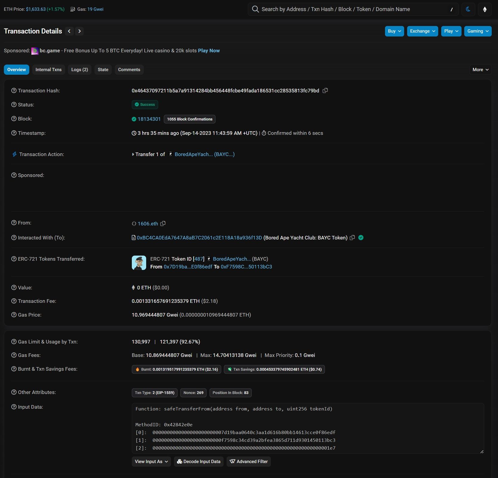 Here is a simple BAYC NFT transfer between two addresses. Let’s break this transaction down: