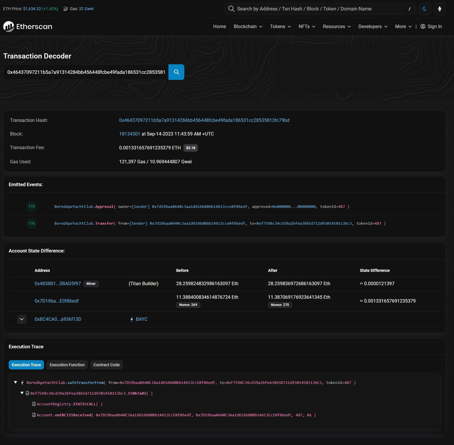 The transaction decoder is a tool to gain more insights about transactions. Each transaction emits events and smart contract calls involving nodes that add transactions from the mempool. The transaction decoder provides an intuitive interface to track the value transfer between such parties. Access the decore under the ‘More’ menu on any transaction page.