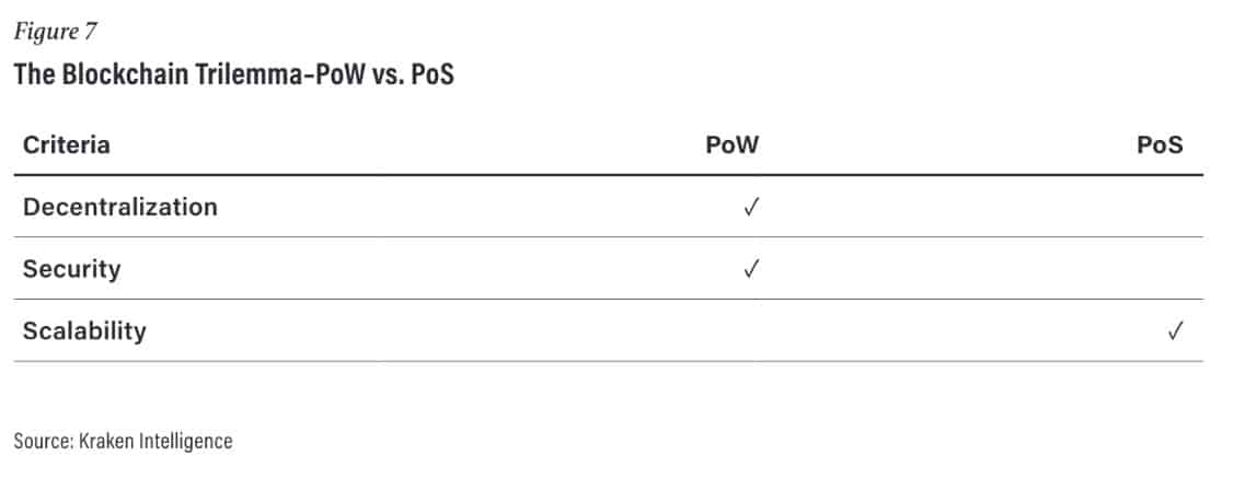 The truth is, we do not know which method will win out in the long run… Heck, as a community, we can’t even decide whether Proof-of-Work or Proof-of-Stake consensus mechanisms are superior yet. A recent report released by Kraken Intelligence sums up the strengths of PoS vs PoW nicely: