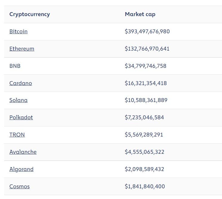 There are hundreds of layer 1 blockchains, too many to name them all here. According to Chainalysis, here are the top ten layer 1 blockchains by market cap: