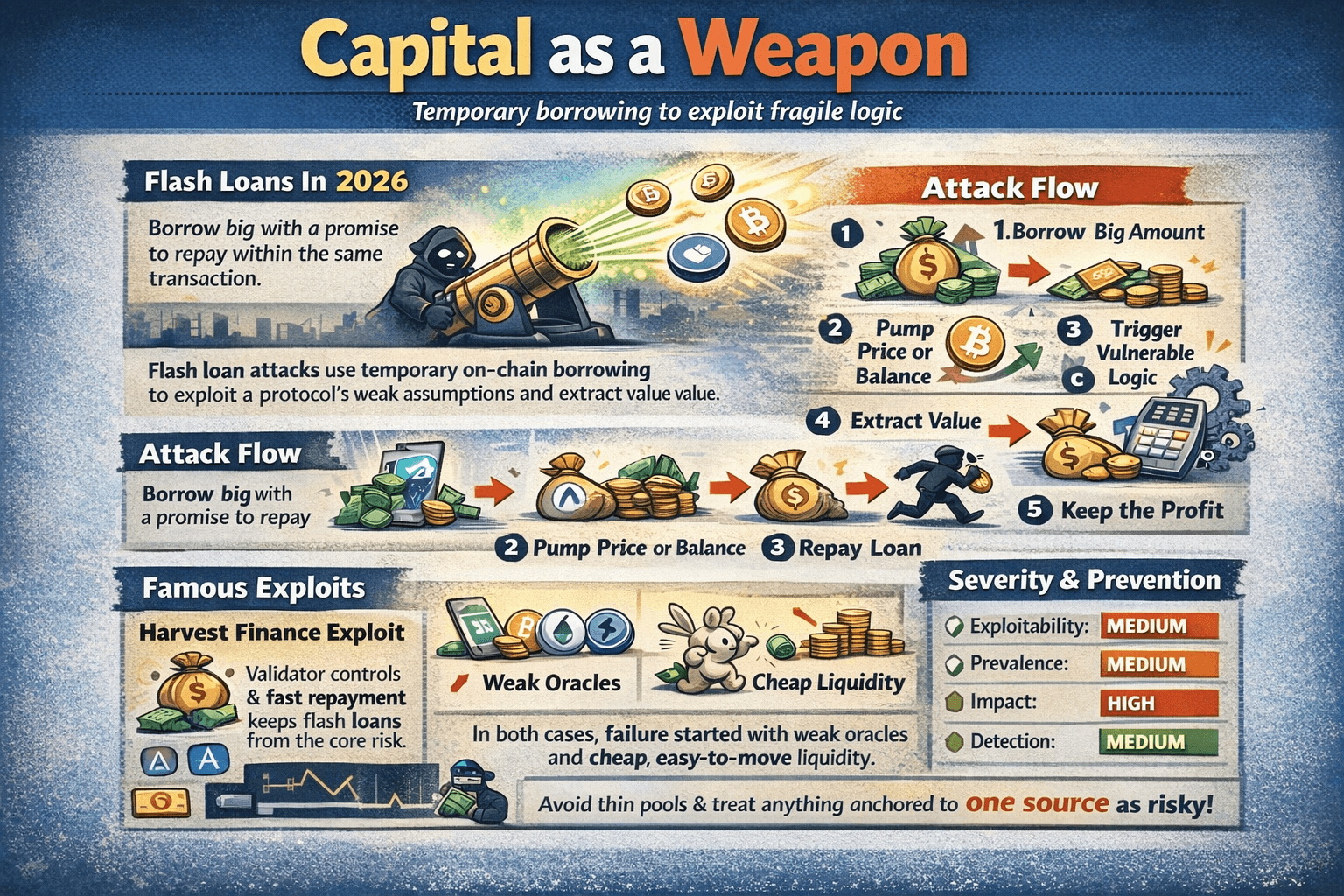 Avoid Thin Pools, be Strict with Slippage, and Treat Protocols that Rely on a Single Spot Price as Higher RiskTools like Aave flash loans make it possible to borrow large amounts with the requirement that repayment happens before the transaction completes. Flash loans are not the core vulnerability. They magnify weak assumptions around pricing, collateral, and liquidity.