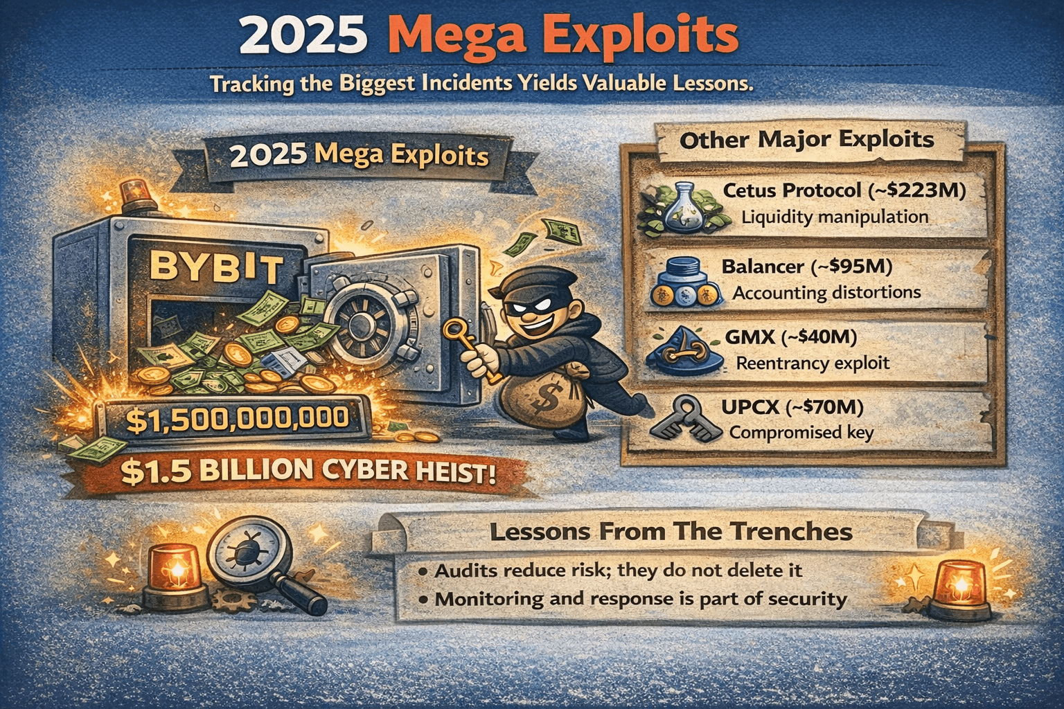 A Useful Way to Stay Grounded is to Track the Biggest Incidents and Figure out the "Why" and “How”In 2025, the stand out event was the Bybit theft of approximately $1.5 billion, which shows how devastating key and approval workflows can be when an attacker gains the ability to authorize a transfer.