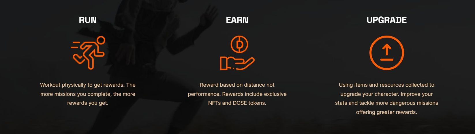 Users earn DOSE tokens by completing fitness tasks like walking or running, which are tracked through their smartphones. The app converts these activities into rewards that can be used within the game or traded for cryptocurrencies. This mechanism ensures that every step taken contributes to the user's progress and earnings.