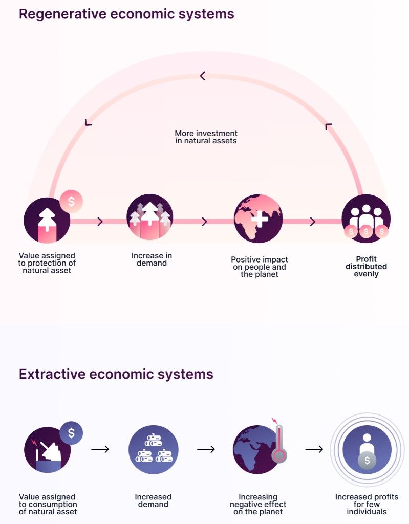 By aligning finance with circular economy principles, ReFi creates economic systems that generate wealth while also preserving and enhancing natural resources.
