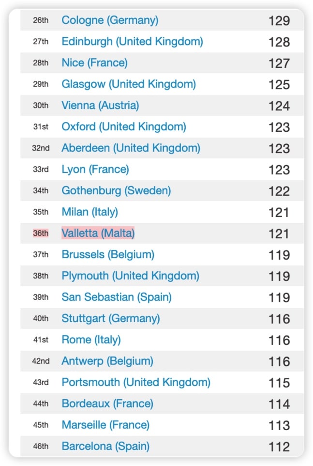 Image via Expatistan.com Malta has a slow pace of life and is not known much for vibrant nightlife, making it more appropriate for those looking to relax while enjoying a lovely culture and beautiful architecture. In addition, the internet speeds are very fast on the island, which is always an important consideration.