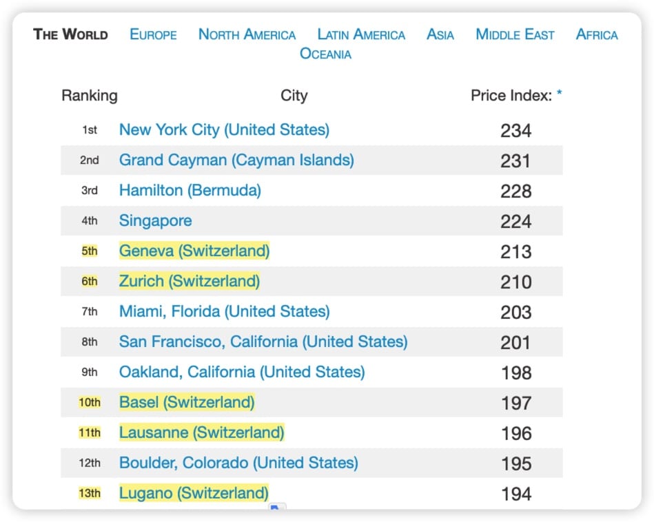 Swiss Cities Rank as Some of the Most Expensive Cities in the World. Image via Expatistan.com Switzerland is certainly not the ideal place for those who enjoy a cheap and cheerful lifestyle.