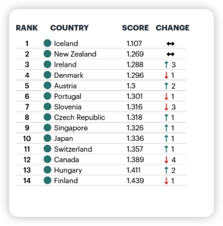 A notable update from last year is that Costa Rica ranked quite safe, enjoying the same low crime rates as Italy, ranking safer than the UK or Spain. Unfortunately, this has changed in the past year due to increased criminal activity. Costa Rica has seen its alert levels increase and travel advisories encourage caution when travelling to this country.