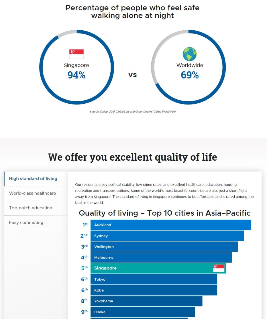 Singapore consistently ranks as one of the safest places to live globally and has a high quality of living. As you would expect, internet speeds are lightning fast, and there are fantastic restaurants and the best of pretty much whatever it is you are looking for.