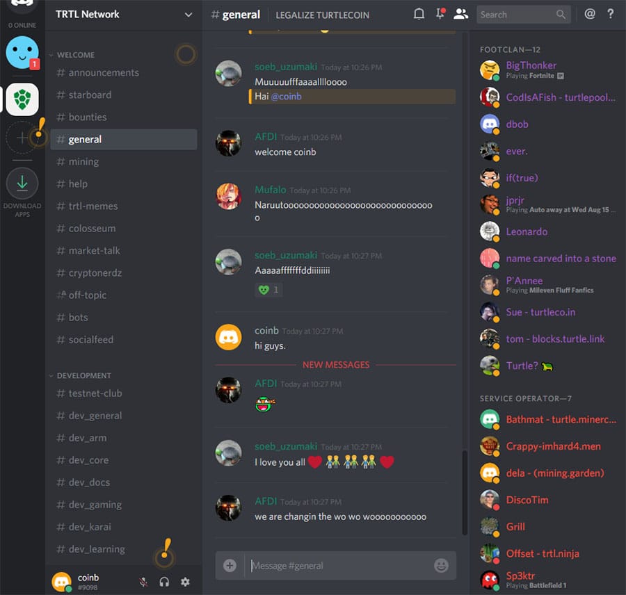 Turtlecoin Discord Chat.The developers are also very active on Medium as they update the community on a weekly basis. Apart from these weekly updates, they also have a whole host of resources and posts that help users better understand the more technical aspects of Turtlecoin. There is also quite an active presence in the Turtlecoin subreddit.