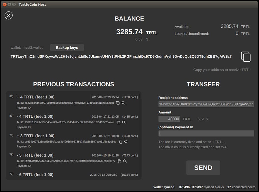 Golang GUI Wallet. Source: GithubFor those users who are more comfortable with the command line, then Turtlecoin also offers this as an option with their standard CLI wallets.