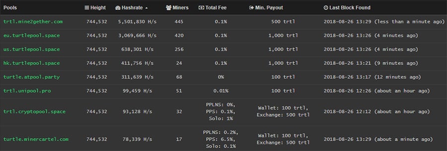 Top Turtlecoin Mining PoolsThe summary will give you all the information from the fee structure to minimum payout. If you are going to be selecting one of these pools based on this information, you will probably want to double check where their servers are located and choose those closest to yourself.