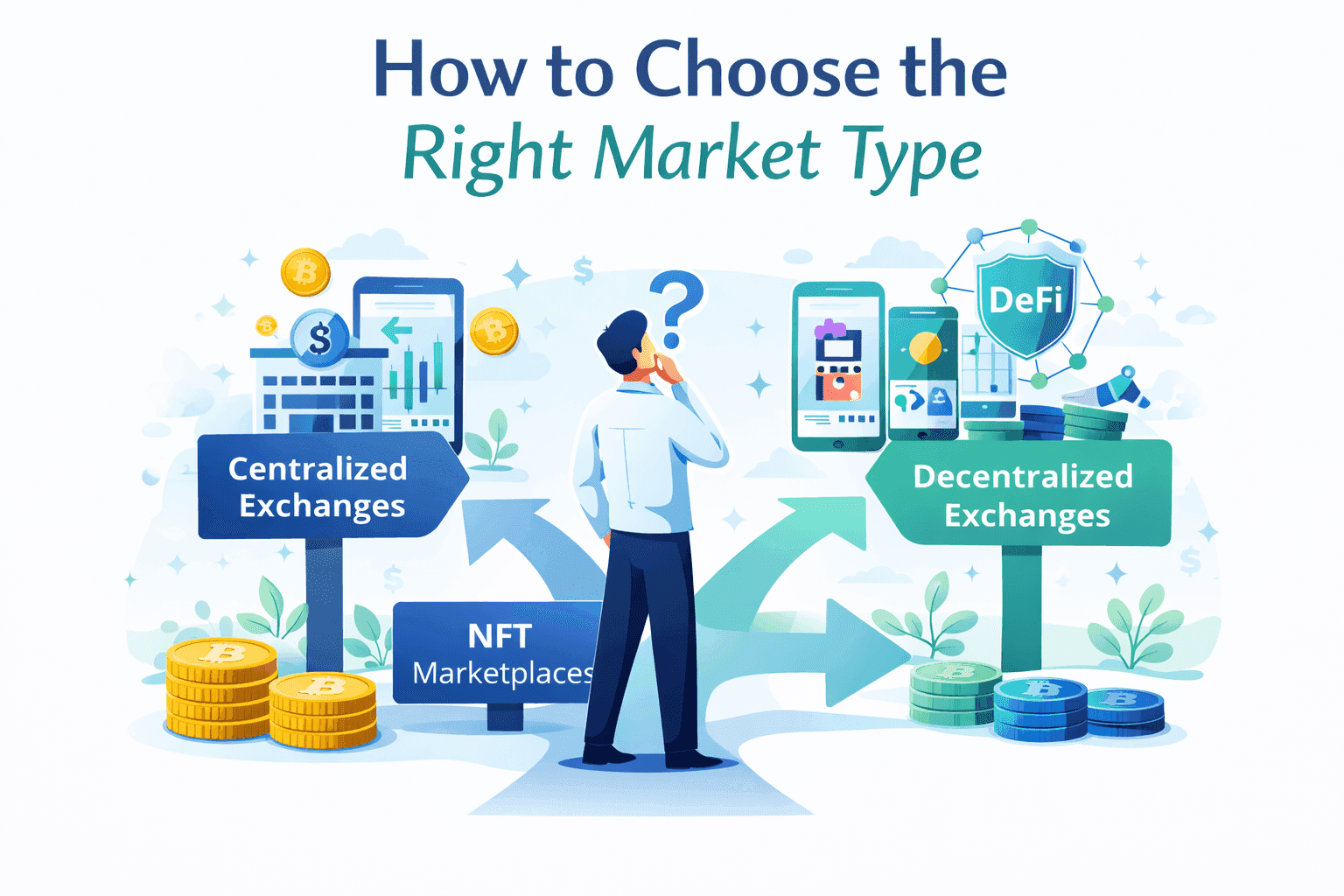 This guide covers trading venues and market types, not technical analysis concepts like Break of Structure (BoS). Market structure here refers to how crypto markets are built and accessed, not chart patterns or price-action terminology.
