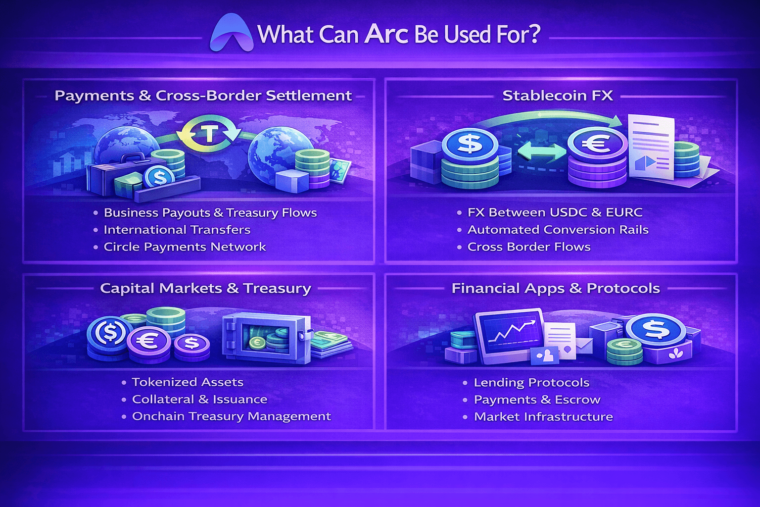 Arc is designed mainly for payments and cross-border settlement, stablecoin FX as well as capital-markets and treasury use cases.