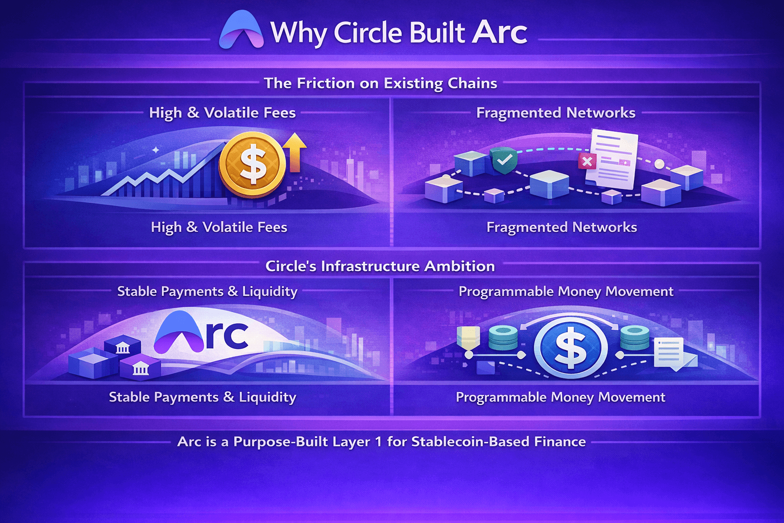 Circle built Arc because existing blockchains were not designed around the practical needs of stablecoin-based finance. Payments, FX, and capital-markets activity need infrastructure that behaves more like dependable financial plumbing than a general crypto network. That means lower uncertainty around costs, less operational friction for treasury teams, more suitable privacy controls for sensitive transfers, and smoother coordination across ecosystems for applications built around digital dollars and other regulated assets.