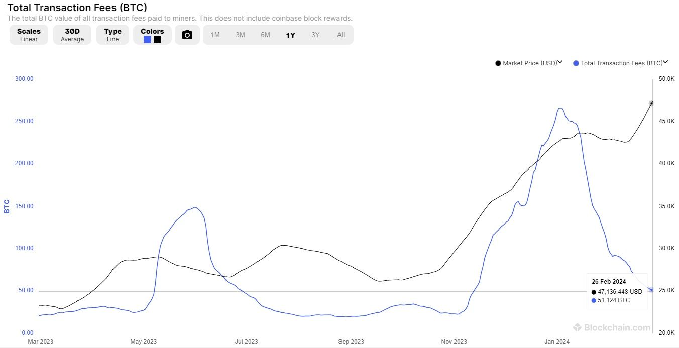 Recent data, however, shows that transaction fees have been on a somewhat downward trajectory as of late.
