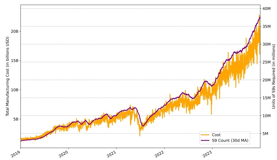 Bitcoin is Insulated From 51% Attacks. Image via Coin MetricsAnalyzing secondary market data and real-time hash rate output, the report determined that executing a 51% attack on Bitcoin would require purchasing approximately 7 million ASIC mining rigs, totalling around $20 billion. What if the attacker could manufacture their own rigs? Even in this scenario, it would cost over $20 billion, with the Bitmain AntMiner S9 being the only feasible device for reverse engineering.