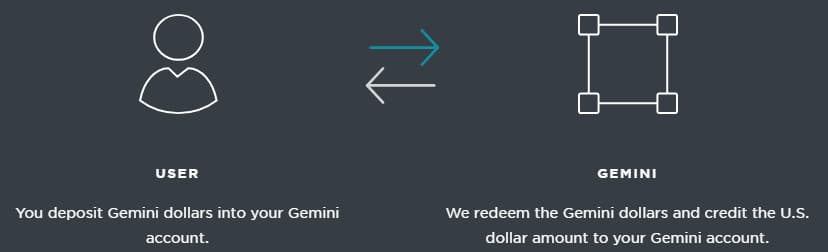 The Gemini Dollar "Network of Trust"New Gemini Dollars are created anytime a customer withdraws the tokenized dollars from the Gemini exchange. They are then destroyed anytime a customer redeems them or deposits them back to the Gemini account.