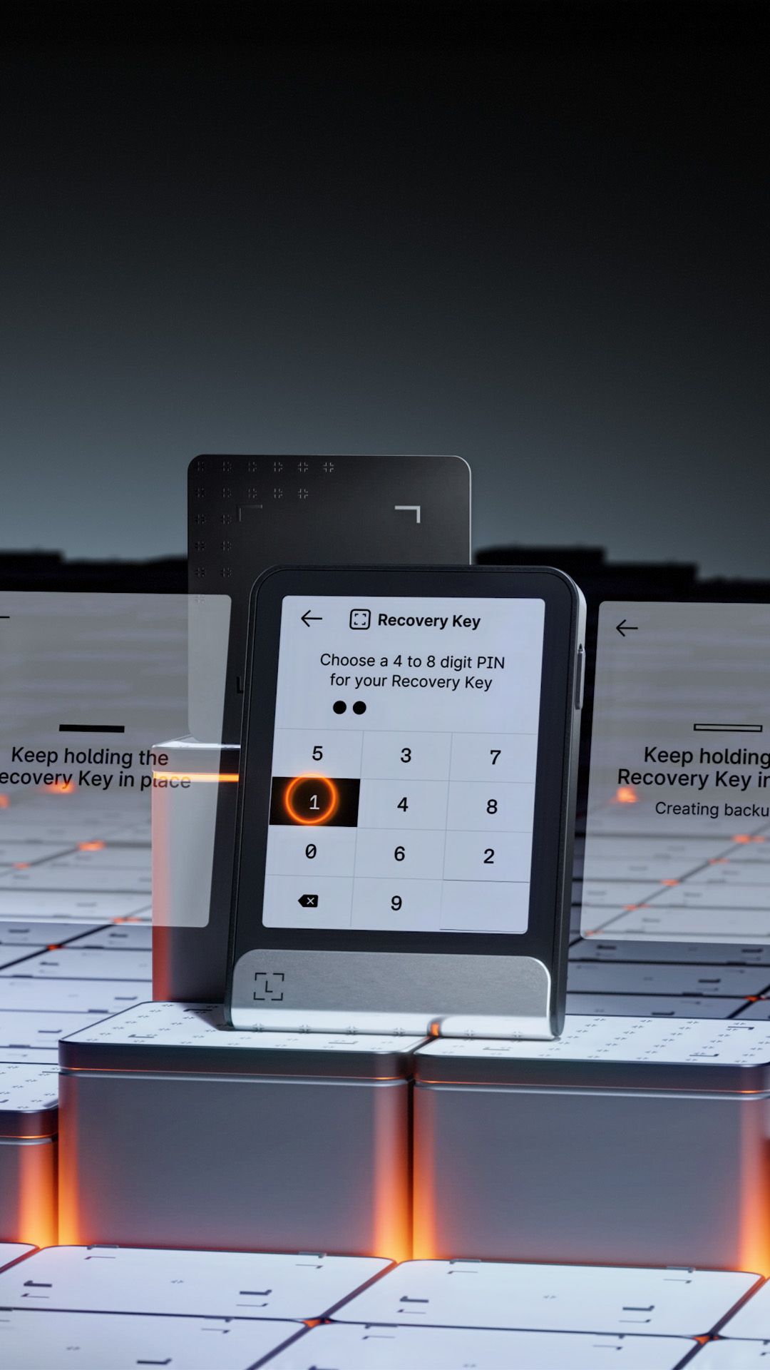 - Backup Process: When setting up a new Ledger device, you'll still be prompted to write down your 24 words on a recovery sheet (this remains the foundational best practice). You then have the option to create an additional backup: simply hold your Ledger Recovery Key against the back of your Flex or Stax, create your unique PIN, and with one tap, your SRP is securely backed up to the card.