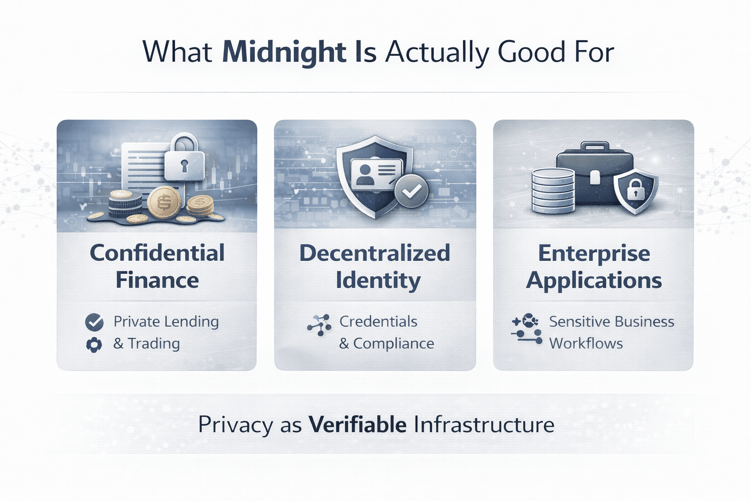 Midnight's strongest use cases sit in areas where public visibility creates friction, whether that means leaking financial positions, exposing user credentials, or forcing businesses to place sensitive operational data on a chain that was never designed for confidentiality.