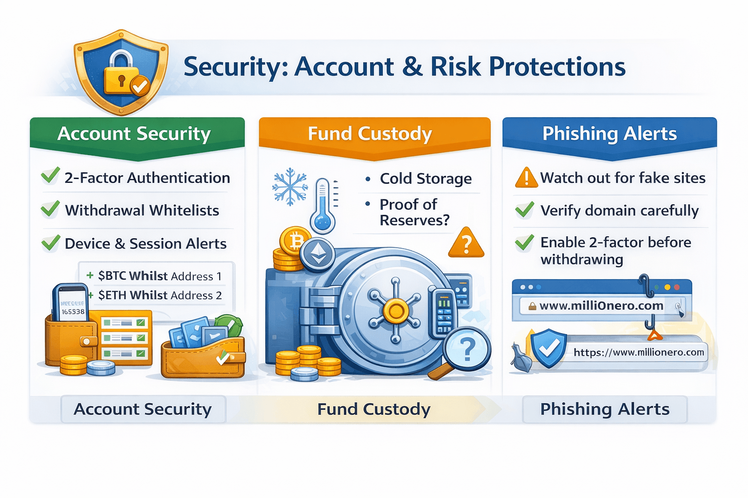 Millionero highlights two factor authentication, verification checks, and offline storage as core protections, while the most important open ended question is whether it offers independently verifiable custody transparency beyond general descriptions. You can get more information from