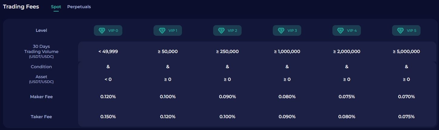 | Spot Fees (Base Tier) | 0.12% maker / 0.15% taker |