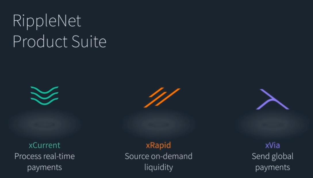 - xCurrent - an enterprise-level software that enables banks to initiate and settle transactions. It's like SWIFT but a lot faster and without the middlemen.