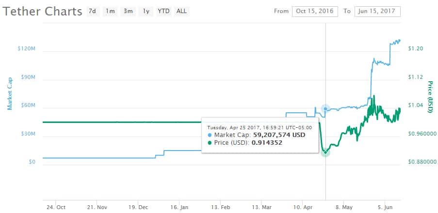 Tether breaks its PegTether becomes untethered. Image via Coinmarketcap