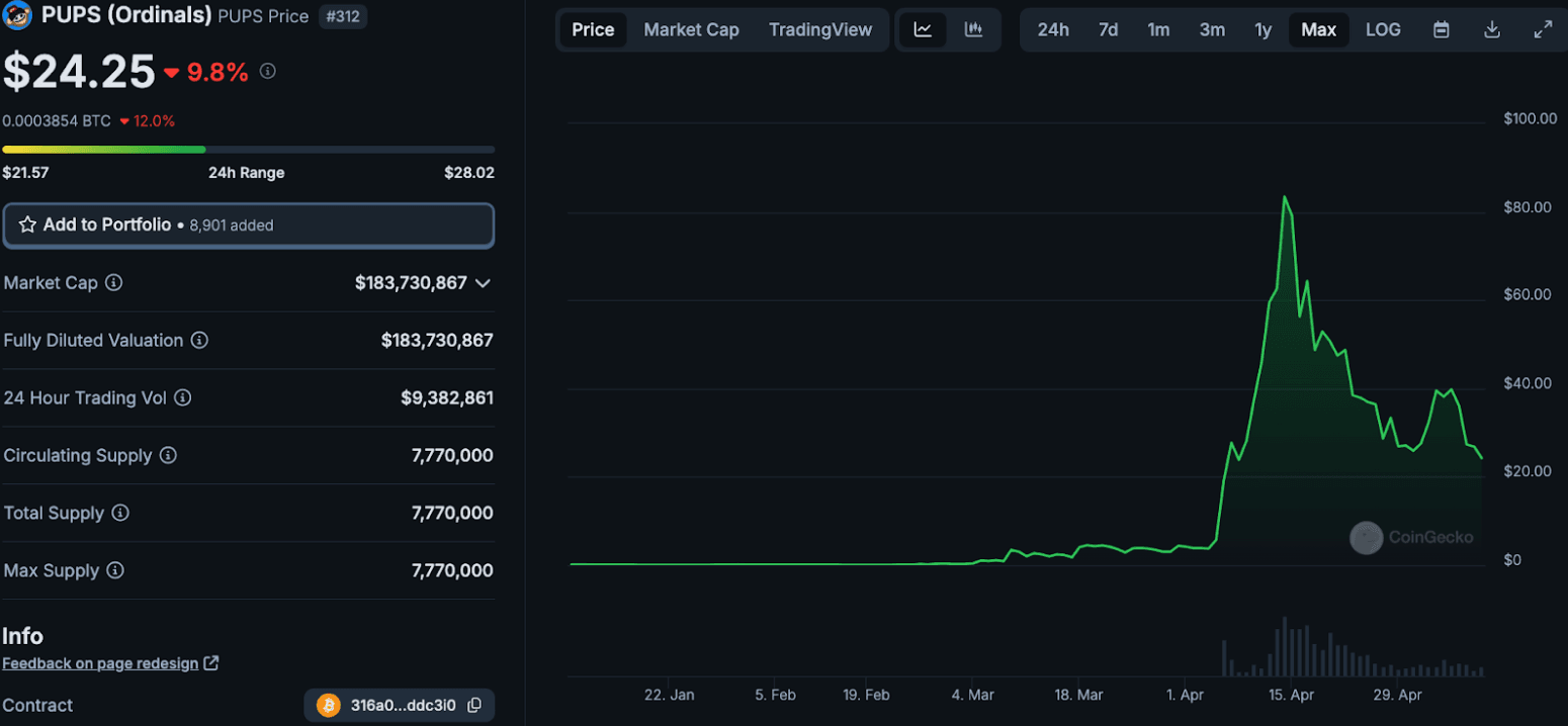 The highlight of the recent airdrop season on Bitcoin was $PUPS, airdropped to Bitcoin Puppet and O.P.I.U.M holders. This token, initially valued at around $0.03, surged to almost $100 over three months.Â