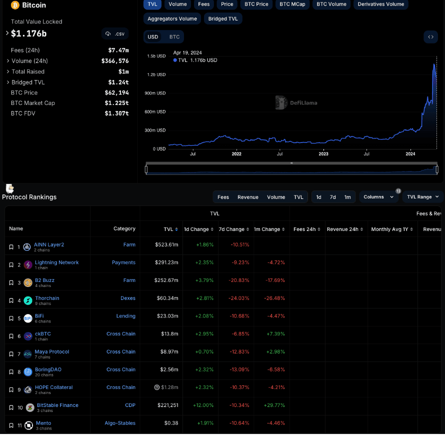 SourceWoah, how can this be?! Only 11 projects are currently listed, boasting a collective market cap of $1B. However, numerous new and innovative projects are currently under development, with many of them already operational, and not even one has made the list! Not even DefiLlama seems to have their finger on the pulse of the exciting developments currently underway on Bitcoin!