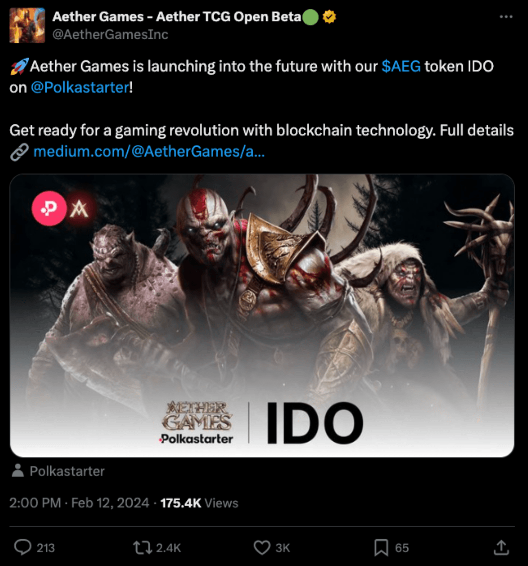 Aether Games is launching its Initial Distribution Offering for the $AEG token on Polkastarter, heralding a gaming revolution that merges traditional gaming with blockchain technology.