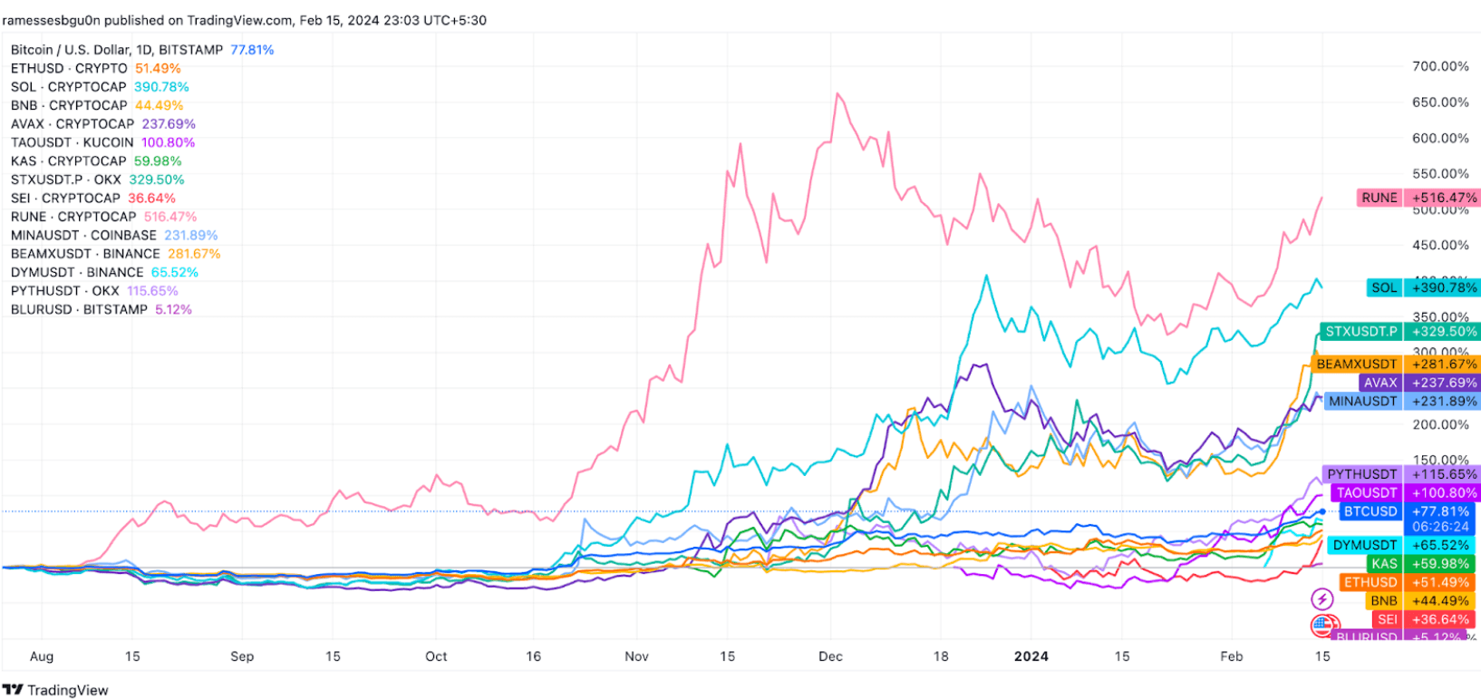 BTC has surged passing $52K. With the halving around the corner, billions being acquired by ETF issuers, and 70% of the supply not moving for over a year, a supply shock is imminent for BTC. This momentum is expected to propel it to new highs. Strap in, Anon, rocket is about to take off.