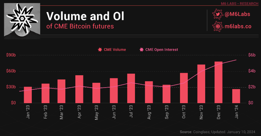 - Notably, the open interest volume of Bitcoin futures on CME overtook that of Binance Futures in November 2023, signifying growing demand from institutional investors.