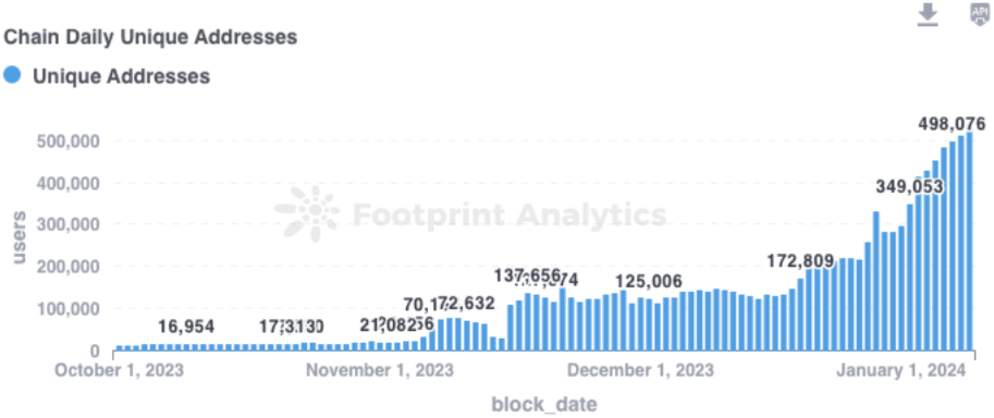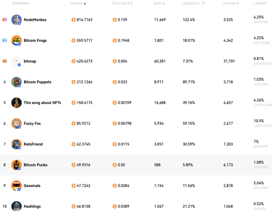 Unique users on the Ronin Chain. Source: Footprint Analytics. Checking in on the Bitcoin ecosystem, it seems the solid blue chip collections have started emerging for both NFTS and BRC-20 inscriptions. These ecosystems are still in their infancy and if this interests users, they should investigate the lesser-known collections building traction on twitter for when the market narrative once again swings back to Bitcoin ecosystem projects.