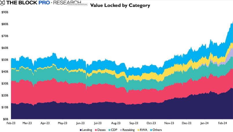 The ongoing rally is centered around BTC and ETH. Bitcoin's surge is attributed to the performance of the ETF, while Ethereum's rise is fueled by the anticipation of the ETH ETF, ecosystem updates like the Dencun upgrade scheduled for mid-March.