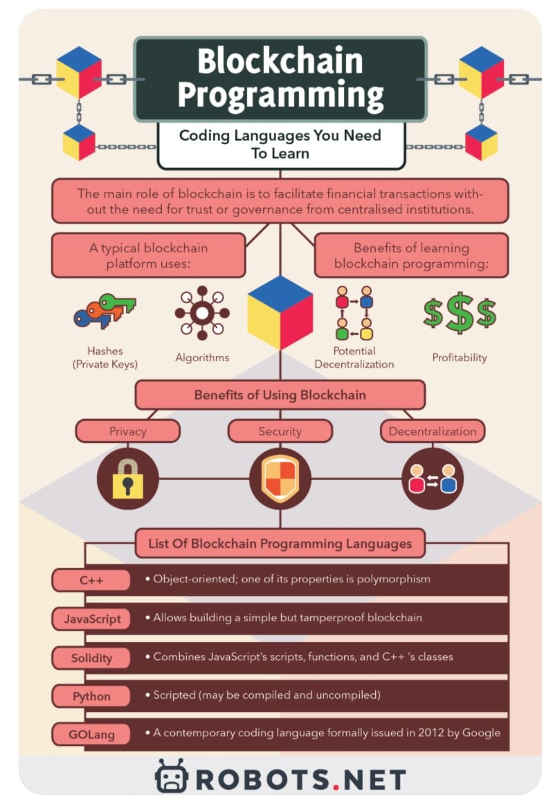 Blockchain Programming Languages Recommended Image via Pinterest When it comes to blockchain developer jobs and engineering positions, not only can skilled employees choose between companies, roles, projects, and choose between global locations or remote work, but they can also choose to specialize in one Blockchain network over another.