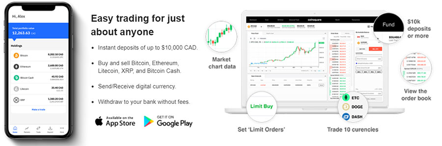 Coinsquare's Main Features It also has pretty competitive fees of just 0.2% on trades, and 2.5% on deposits using bank draft, Flexepin, or Interac. Transfers by wire have a 0.5% fee, but credit card deposits come with a hefty 10% fee. When it comes to withdrawals users are limited to direct bank deposits, and the fee is 2%, with a minimum transfer of $100. Alternatively a wire transfer can be used, but the minimum transfer is $10,000, while the fees are 1-2%.
