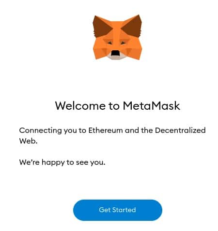 MetaMask Welcome PageStep 2: You will now be greeted with the welcome page. Click on ‘Get Started’