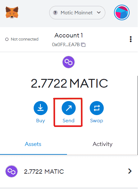 Send ButtonStep 1: Click on the ‘Send’ button in your Metamask wallet. Make sure you’re currently on the Network that you want to send funds from. For example, to send MATIC tokens you need to be on the Polygon Network at the moment.