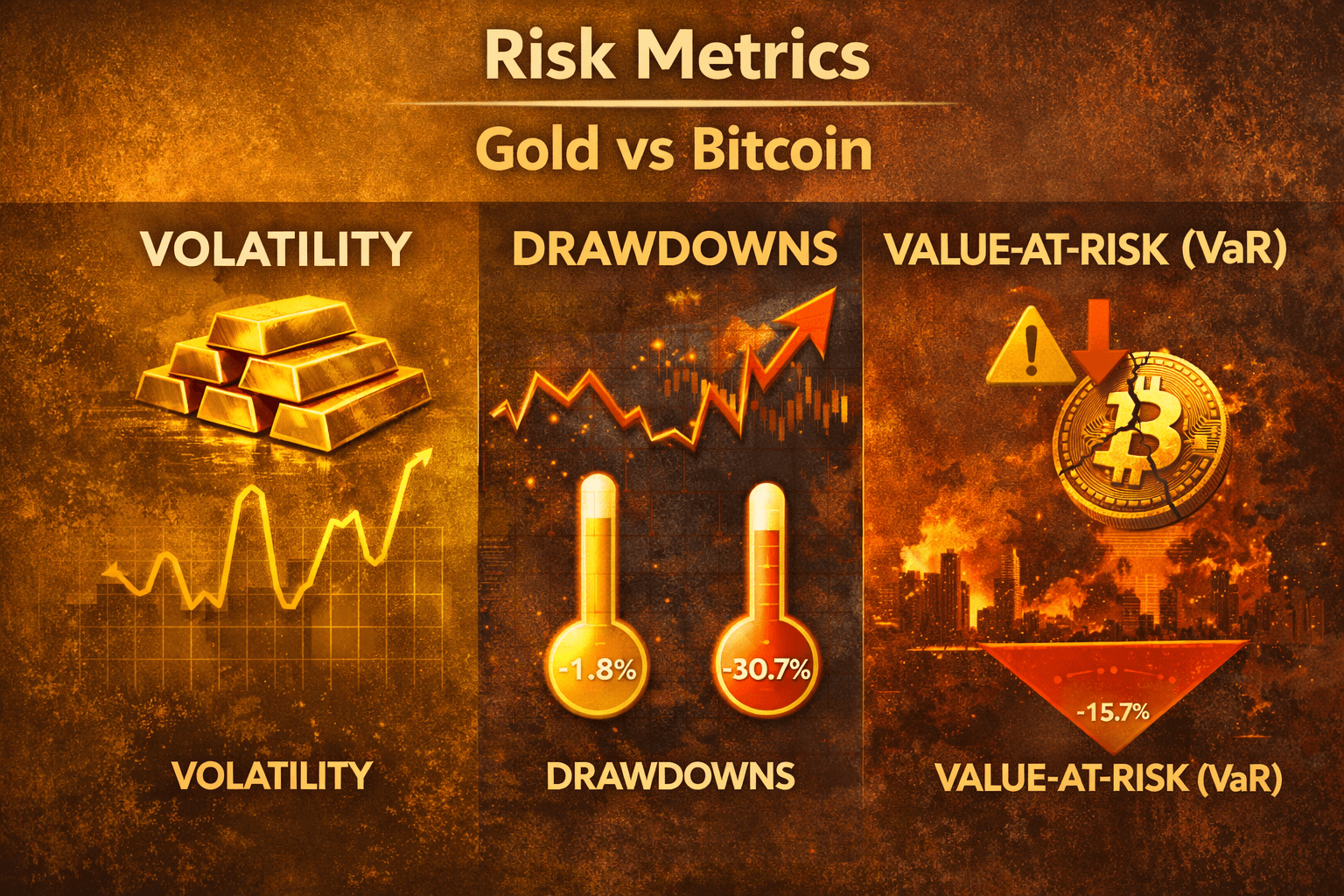 If “gold vs Bitcoin” feels like a story battle, risk metrics turn it into numbers. Think of them like a car’s dashboard: instead of predicting the road ahead, you’re checking how the vehicle behaves when the road gets rough.