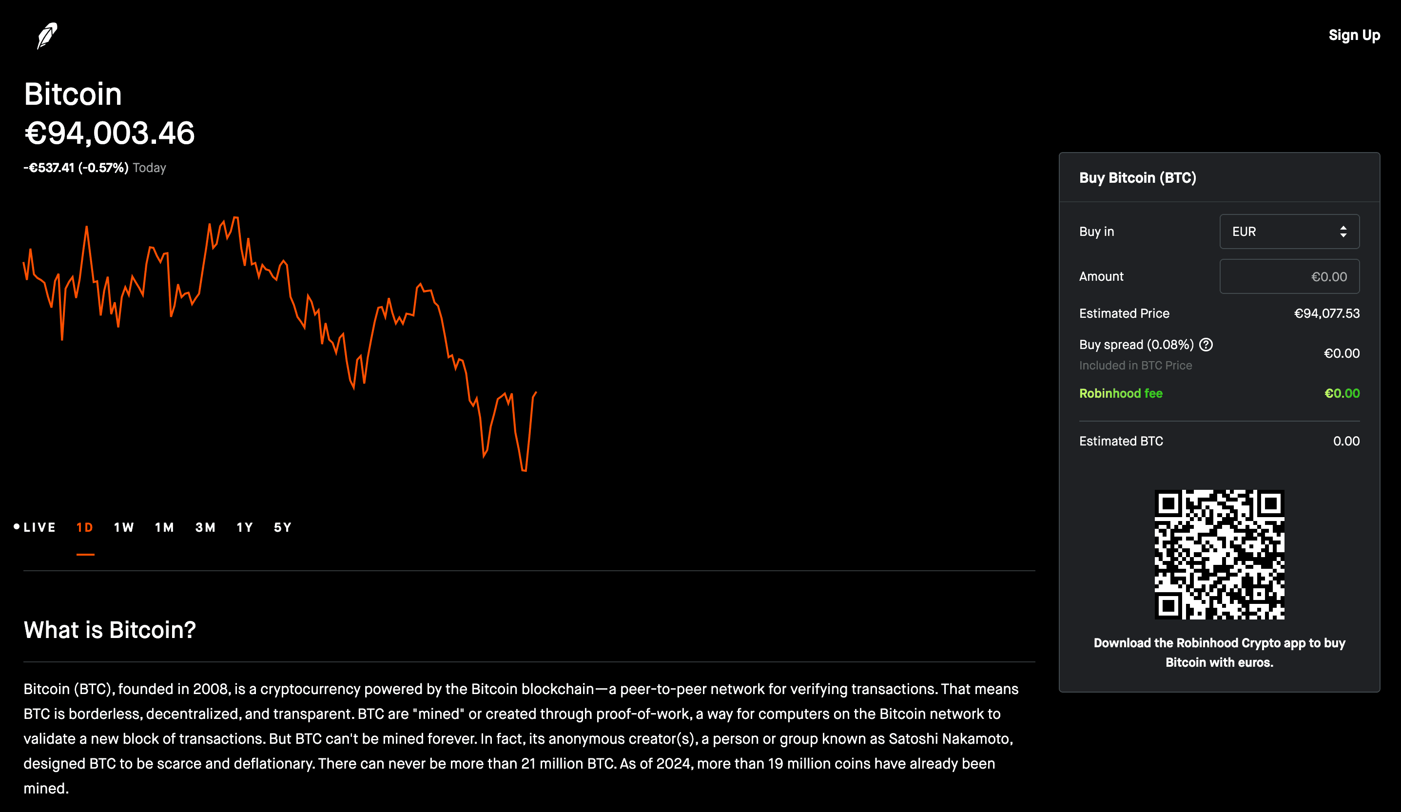You Can Buy Bitcoin on Robinhood. Image via RobinhoodTrading apps are similar to financial apps but are more focused on investment and trading. These platforms are user-friendly and integrate Bitcoin trading into a broader investment portfolio. However, they often do not offer actual Bitcoin ownership (similar to financial apps).