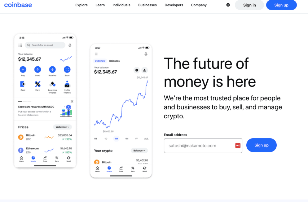 A Look at the Coinbase Homepage. Coinbase is praised for being beginner-friendly and offers a popular crypto debit card for those who want to spend crypto on the go. The platform attracts crypto-enthusiasts from all walks of life from traders to long-term holders. You can find out everything you need to know about Coinbase in our in-depth Coinbase review.