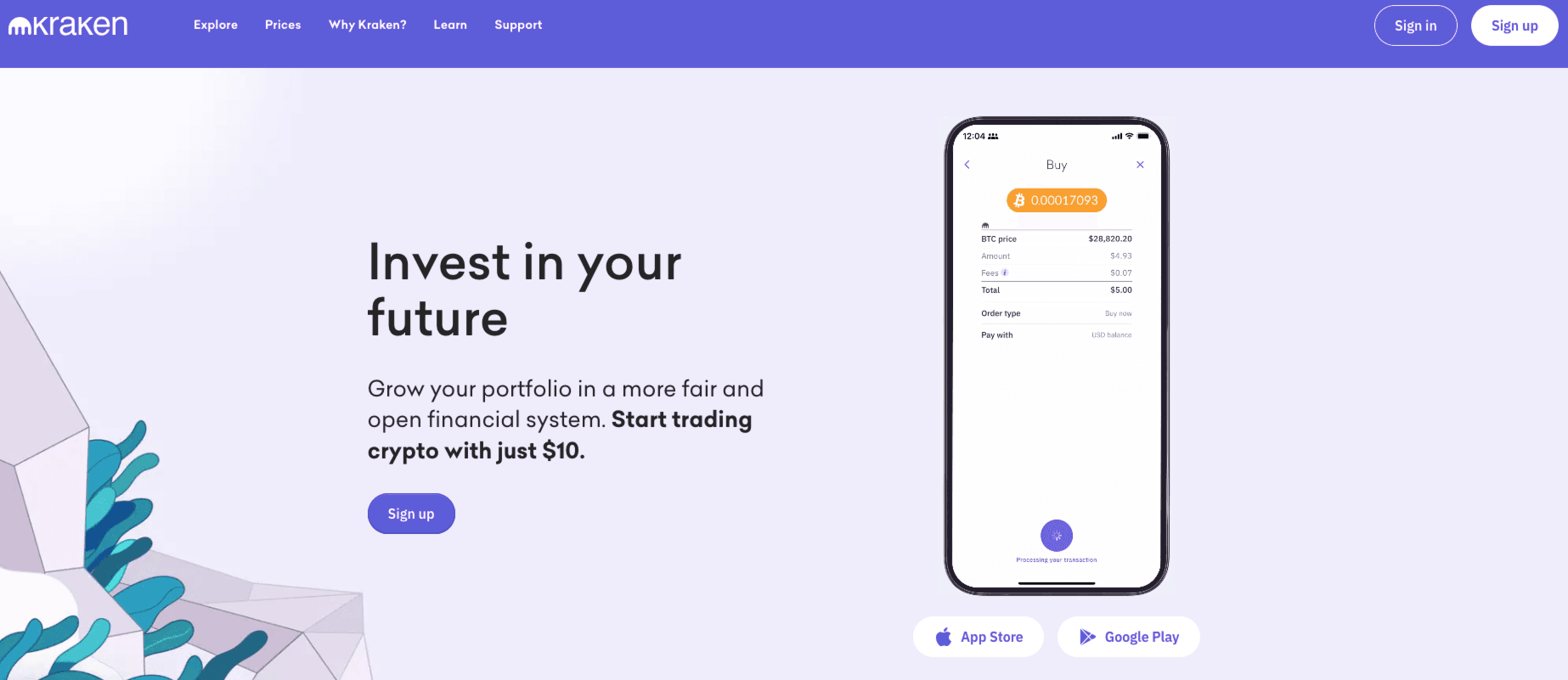 A Look at the Kraken HomepageKraken has our seal of approval as they are the most secure exchange in the industry, being the only platform around since 2011 without ever being hacked or suffering a security breach. It also has fantastic customer service which is important, especially for new crypto users. You can learn more in our dedicated Kraken review.Â
