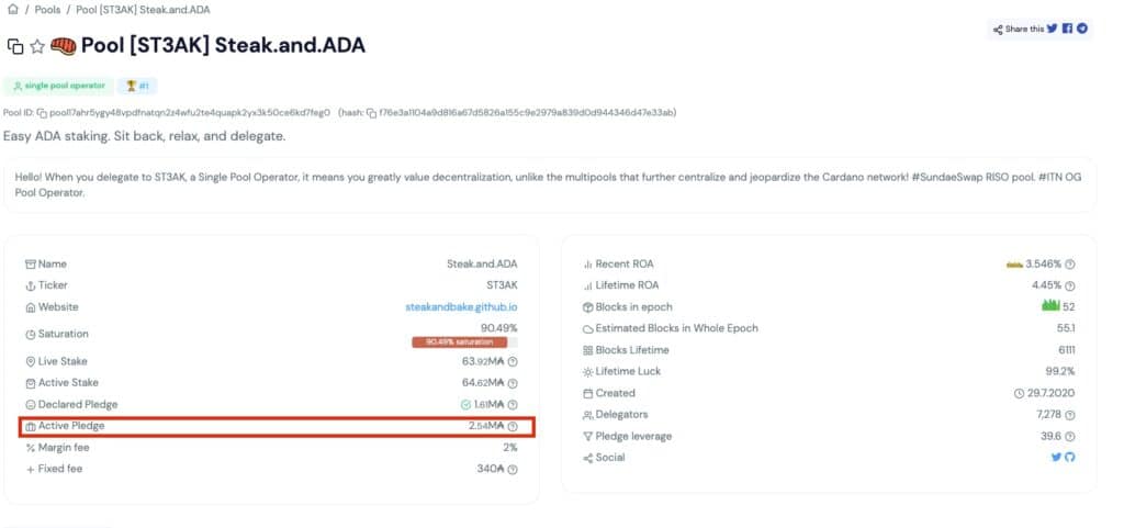 Image via adapoolsNormally, the higher, the better, as it affects rewards calculation and shows that the pool operator has a vested interest in the maintenance and operation of the pool.