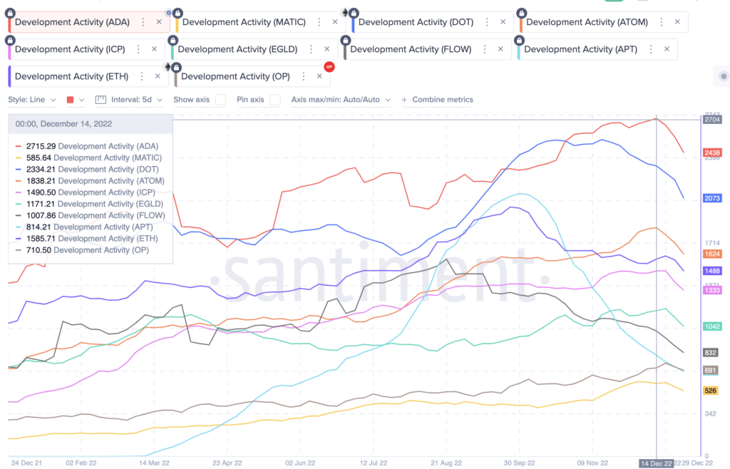Cardano Saw the Most Developer Activity in 2022. Image via Santiment