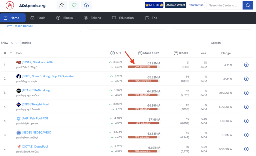 Current top Cardano stake pools. Image via adapools.The above image shows the current top staking pools. Aside from Daedalus, Exodus, and Trezor, most Cardano wallets will show similar information when you go into the Cardano staking option interface.